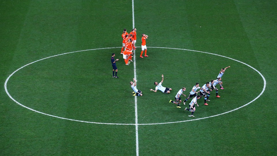 Con sufrimiento, pero mucho oficio, y con Javier Mascherano y Sergio Romero en plan estelar, Argentina logró imponerse en los penales a Holanda para reservar su boleto a la final de la Copa Mundial de la FIFA 2014. La fortaleza defensiva de la Albiceleste fue clave en este partido disputado el 9 de julio en el Arena de Sao Paulo.