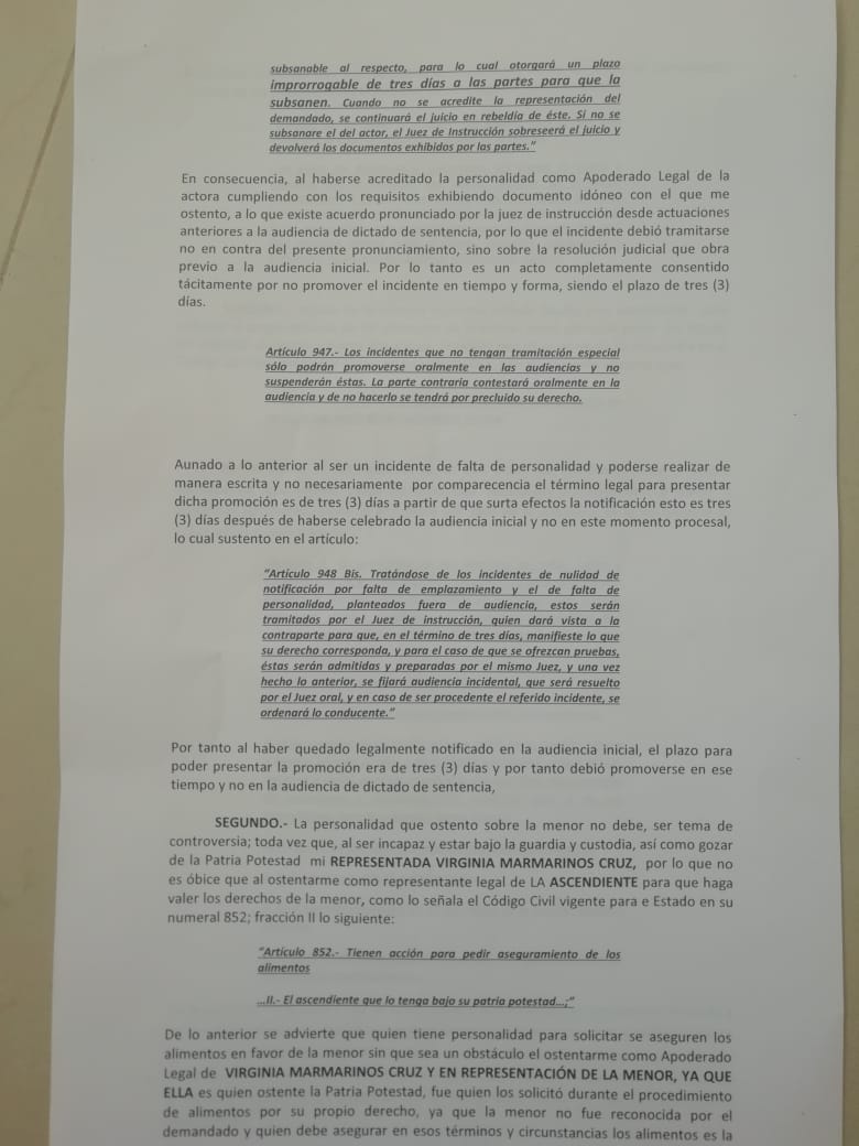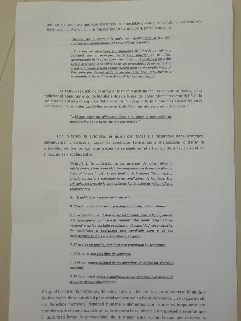La mujer afirma que fue despojada de su vivienda, que sufrió violencia física, patrimonial y económica, además que su ex pareja le robó sus ahorros, dejándola en la calle y desconoció a su hija, motivo por el que promovió un juicio de manutención alimentaria que llegó hasta el amparo que ganó y que otorga alimento a su hija.